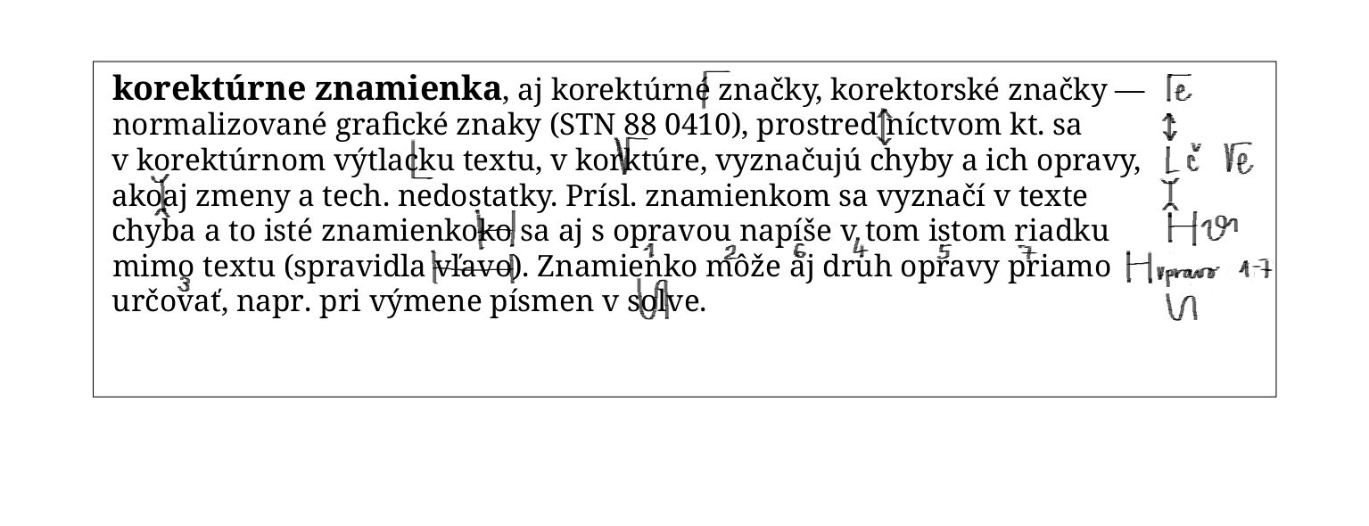 Ilustrácia k heslu korektúrne znamienka Ukážka používania korektúrnych znamienok Ďalšie informácie o ilustrácii Licenčné podmienky Creative Commons BY-SA Inštitúcia Encyklopedický ústav SAV Naspäť na stránku hesla