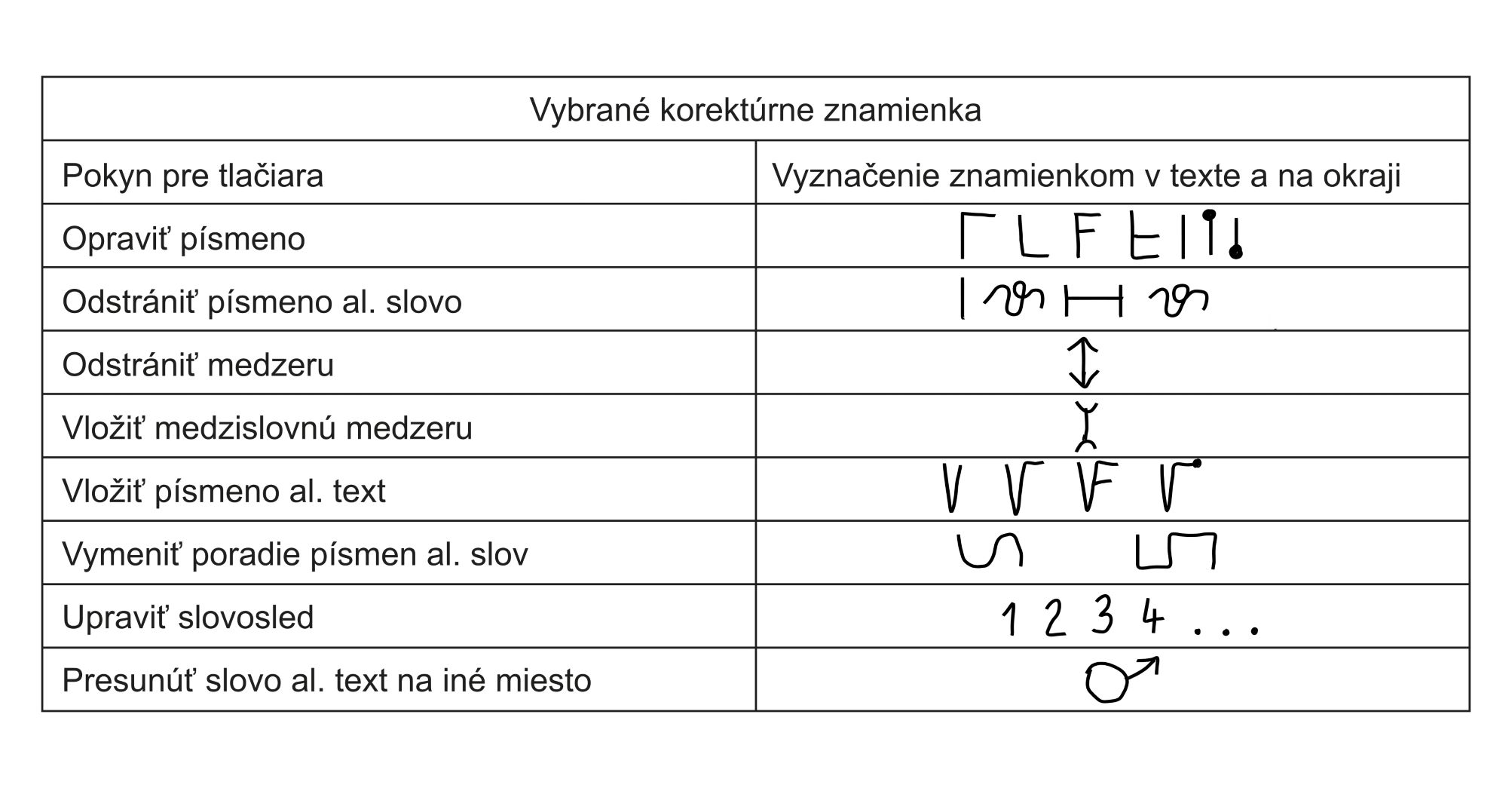 Ilustrácia k heslu korektúrne znamienka Vybrané korektúrne znamienka Ďalšie informácie o ilustrácii Licenčné podmienky Creative Commons BY-SA Inštitúcia Encyklopedický ústav SAV Naspäť na stránku hesla