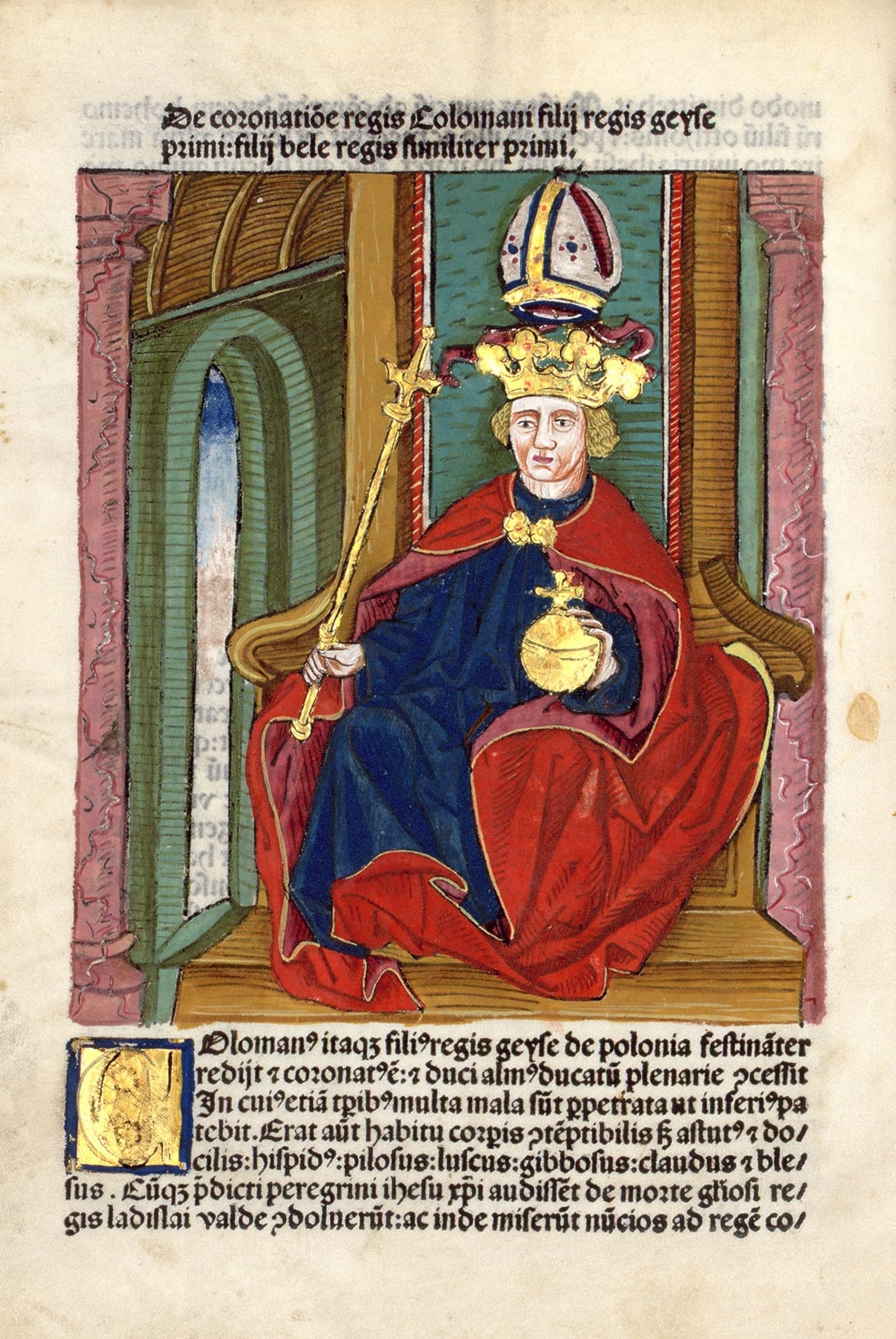 Ilustrácia k heslu Koloman Kráľ Koloman, iluminácia v Kronike Jána z Turca, 1488 Ďalšie informácie o ilustrácii Licenčné podmienky Voľné dielo Inštitúcia Slovenská národná knižnica, Martin Naspäť na stránku hesla